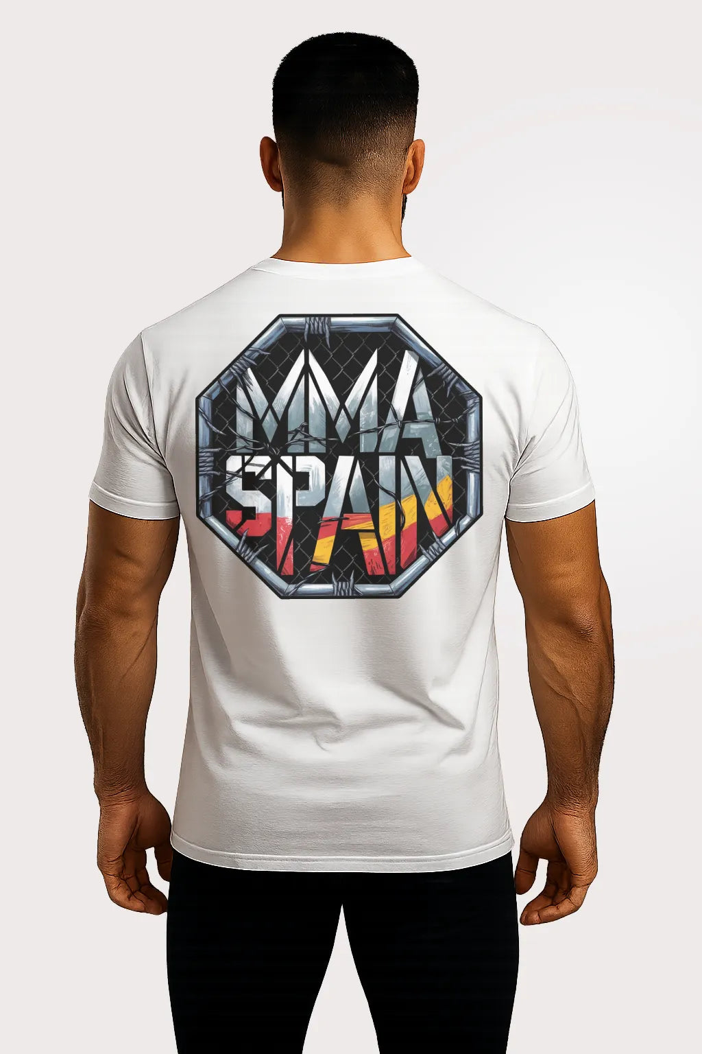 En el pecho destaca la frase “One Man Army”, un mensaje claro de autosuficiencia y poder. En la espalda, el logo exclusivo de MMA SPAIN en forma de octágono, decorado con alambre de espino y detalles sutiles de la bandera nacional, completan el diseño cargado de actitud y presencia.